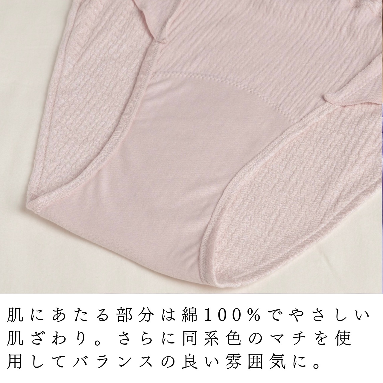 肌に当たる側・デリケートに当たる側は「綿100%」で肌にやさしい履き心地♪